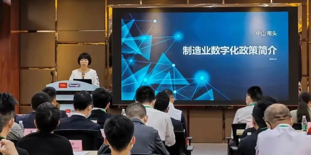 南头经科局副局长罗泳雅进行中山市智能制造转型升级政策宣讲,代表人提到中山正以前所未有的力度全链条、全领域、全要素支持制造业数智化转型,并加大制造业数智化转型金融财政支持力度。