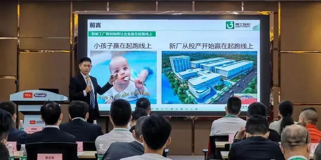 首先,TCL德龙张波总为本次活动致欢迎辞,感谢各企业代表的光临。为了让大家更加直观地调研参观,张总亲自带领大家参观了数智化车间,通过体验真实的场景、真实的车间、真实的厂线等了解智能化、数字化管理的精髓,让在场人员对智能工厂有了更加全面的了解。张总特别强调,通过看板管理系统,可以直观地了解产品实时质量信息并对不良品进行追踪与管控,减少返工和浪费,有利于增强企业核心竞争力。广东精工智能系统有限公司创始人丁佰胜以《企业未来三年靠什么打天下》为题为学员做分析。丁老师分析了制造业现状、揭示制造业的痛点以及数智化转型面临的挑战,迫使企业反思数字化转型的必要性与迫切性。接着他表示企业家要以战略的思维向前看,根据企业类型找到对应的数智化转型路径;未来数字化工厂将无处不在、无孔不入,实现全面覆盖,最后详细介绍了数字化工厂常用系统、关键技术和实施过程,助力企业找准思路,打破困局,转型升级,快速迭代,迈向未来!随后,精工智能总裁常留栓讲述智能工厂规划如何让企业赢在起跑线上。常老师表示在新时代大趋势、大环境下,工厂经营要转型、思想要转型(战略规划);制造要升级、现场要升级(智能工厂规划);需要彻底解放思想,打破主观偏见的束缚,寻求专业团队和力量来完成。一次性把事情做对才是效率最高,成本最低!常老师还以精工标杆客户成功案例向参会嘉宾作了分享。