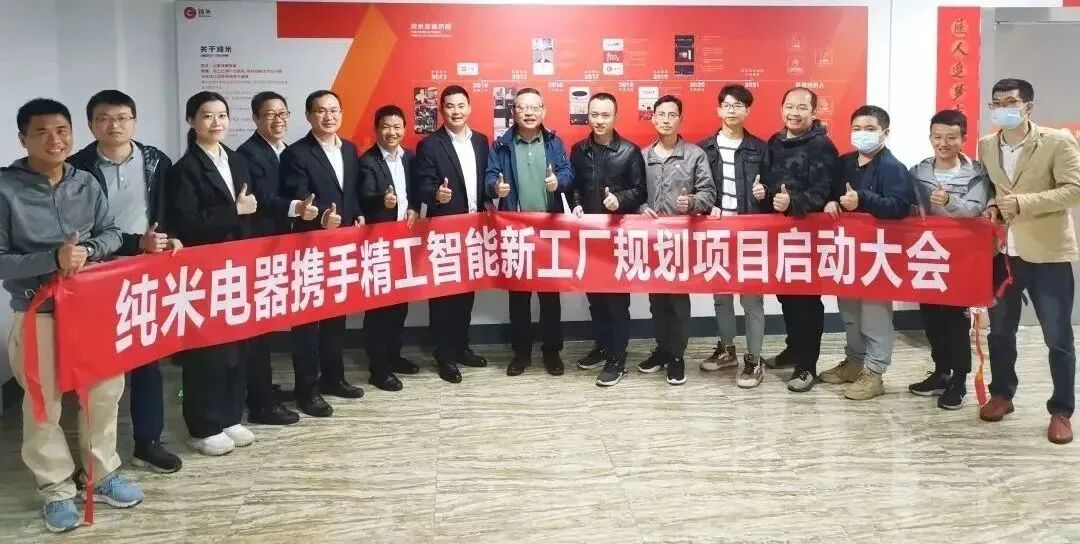 2022年3月24日,纯米携手精工智能开启智能工厂规划项目并召开项目启动大会。