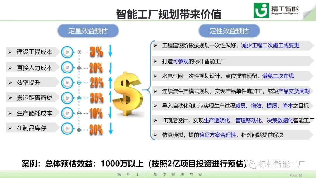 c、智能工厂规划可减少工程二次施工或变更,减少浪费,确保投资回报更高;提高生产效率,可以为企业带来近1000万的价值;