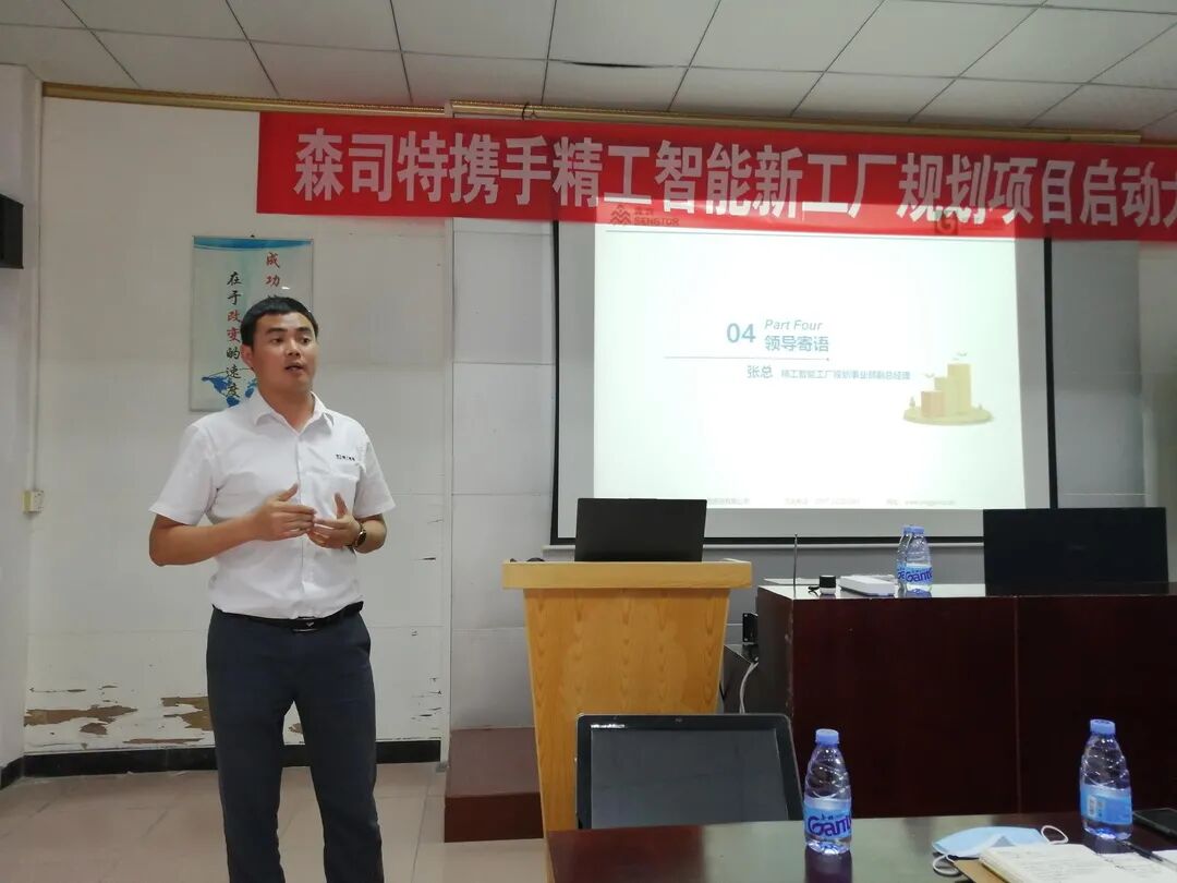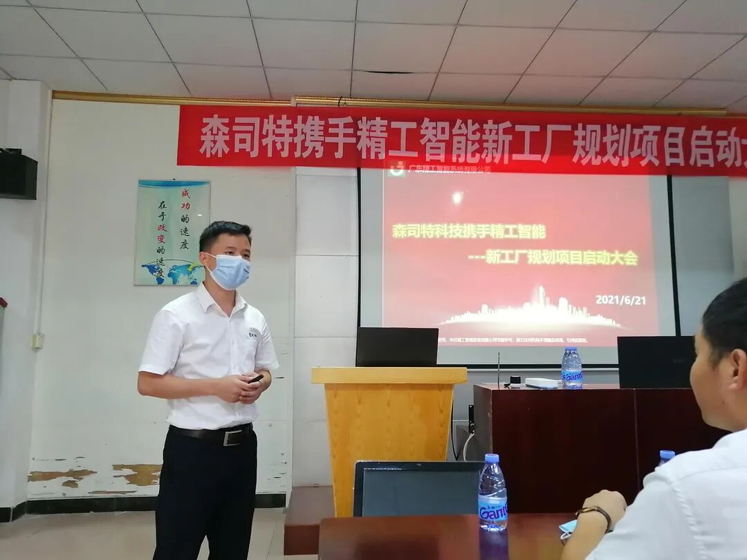 2021年6月21日,惠州市森司特新材料科技有限公司智能工厂规划项目启动大会顺利召开。惠州市森司特新材料科技有限公司任总、邓总、何总,精工智能工厂规划事业部副总经理张胜超老师、项目总监杨录峰老师及其它项目组成员共同参加了本次会议。