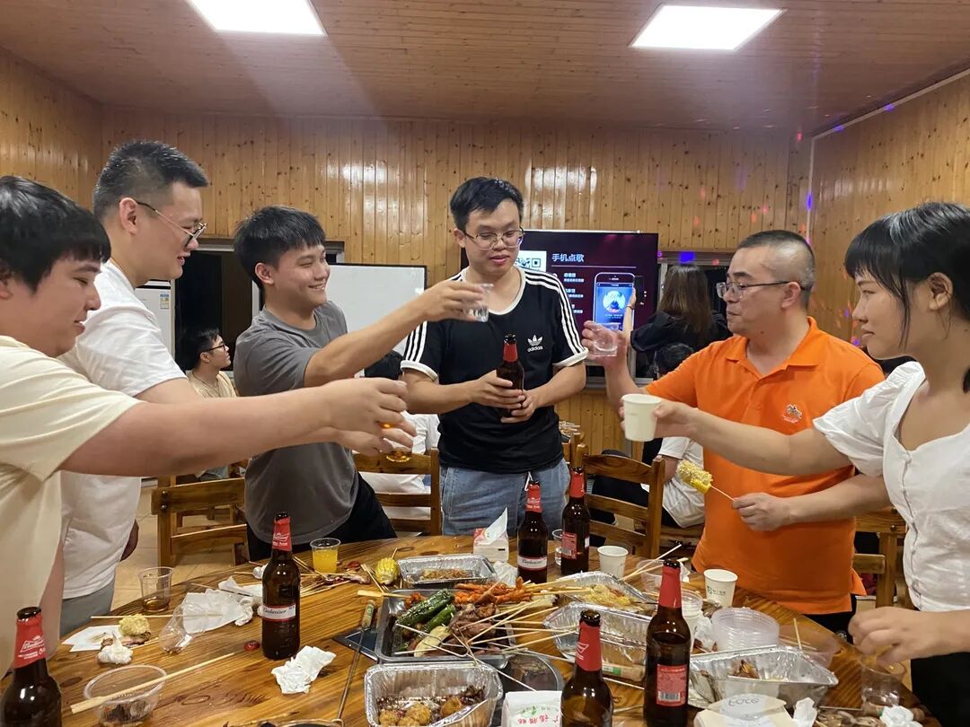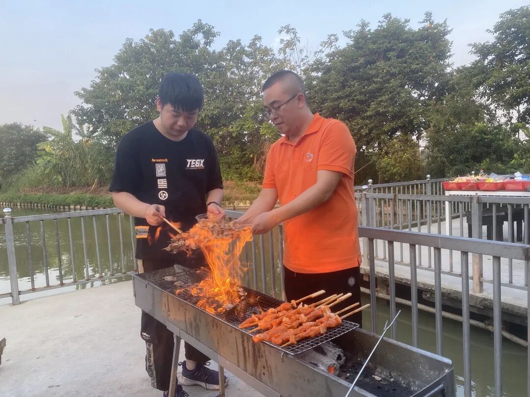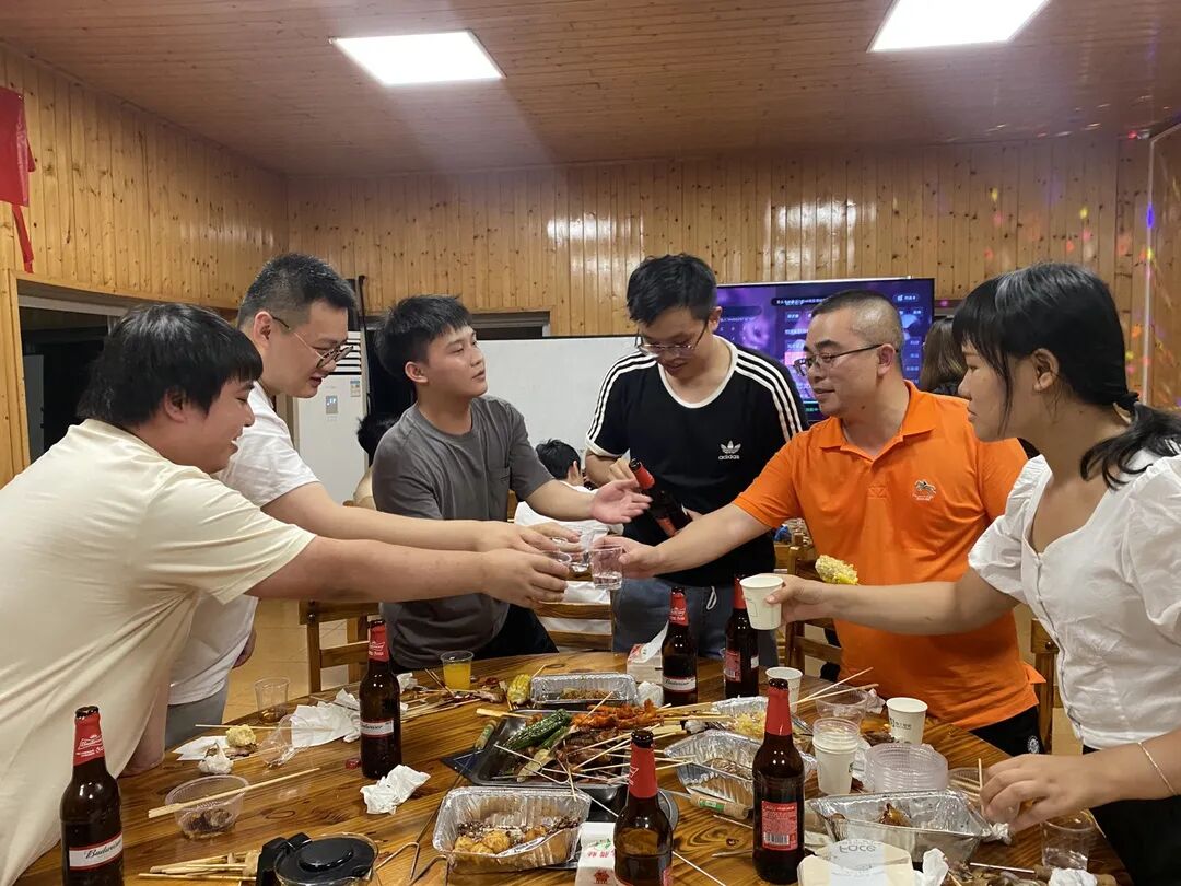 欢声笑语随着炊烟萦绕在空中,吃着自己亲手准备的食物,大家聊着自己在工作和生活中遇到的趣事,在制作和分享美味的过程中,工作的压力得到的释放,同事们的感情得到了交流。