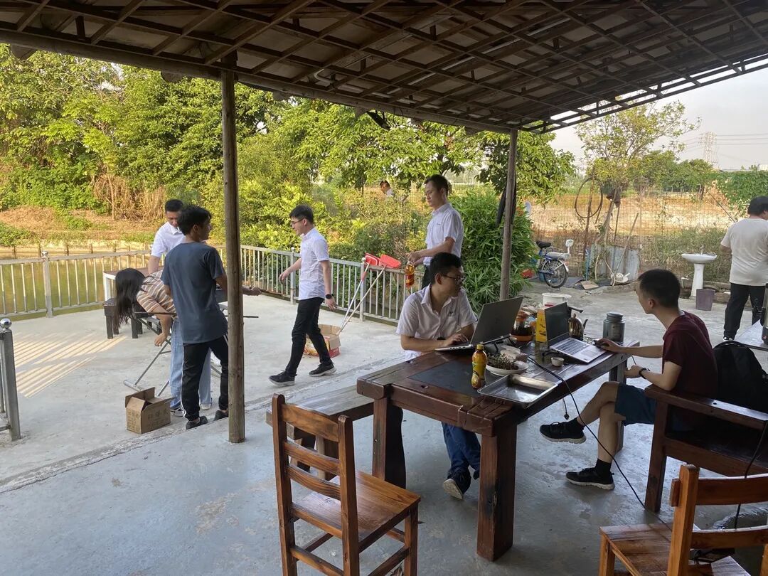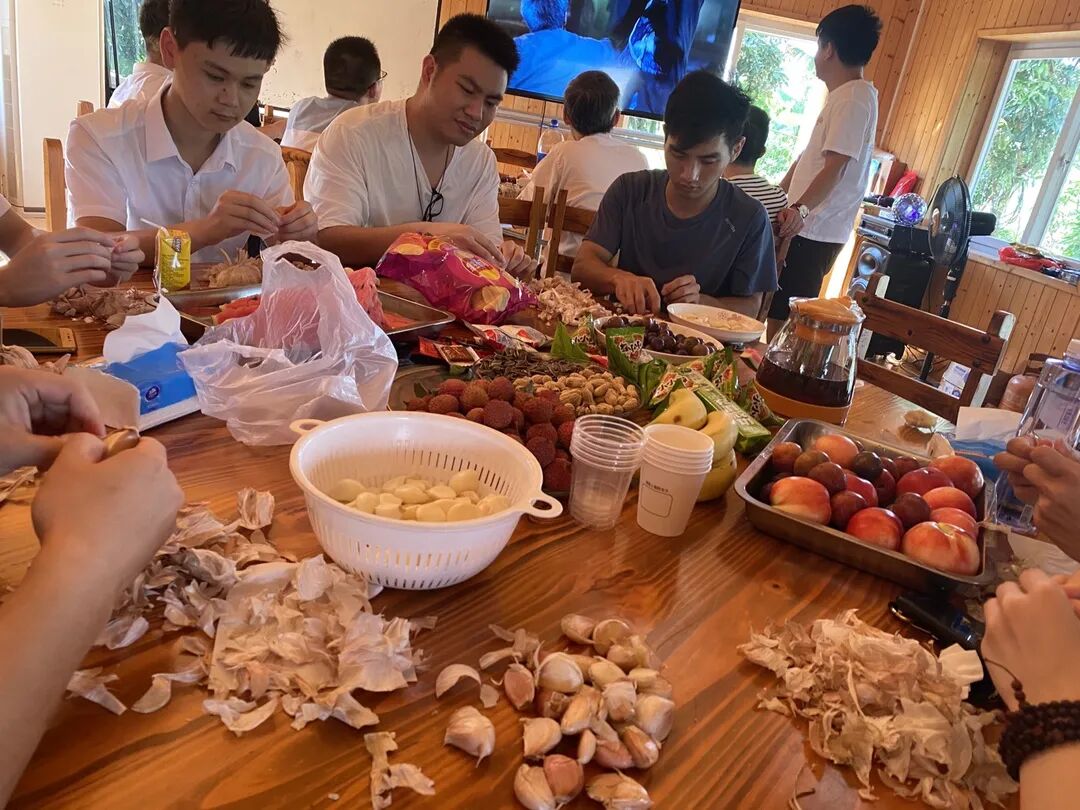 首先,大家轻松体验了一把农家生活:独自一人去池塘钓钓鱼虾,放空自己也不错;大家一起掰掰大蒜捡捡菜,坐下来闲谈带着家的味道;身体强壮的人已经开始搭台搭架搬东西......大家齐心协力,忙中有序,心情都欢快起来~