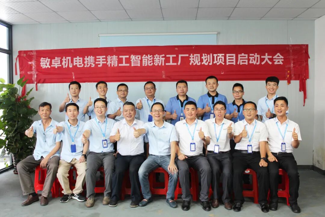 经过对精工智能深入的了解以及考察,敏卓机电正式携手精工智能开启智能工厂规划项目!2021年7月5日,广东敏卓机电股份有限公司智能工厂规划项目启动大会顺利召开。