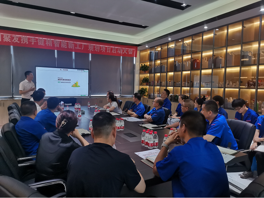 2021年7月13日,杭州聚友塑料有限公司携手精工的精益智能工厂规划项目正式启动。聚友许总、高总等主要领导以及各部门主要领导,健精张总、何老师、施老师以及健峰孟老师一同出席了本次启动大会。