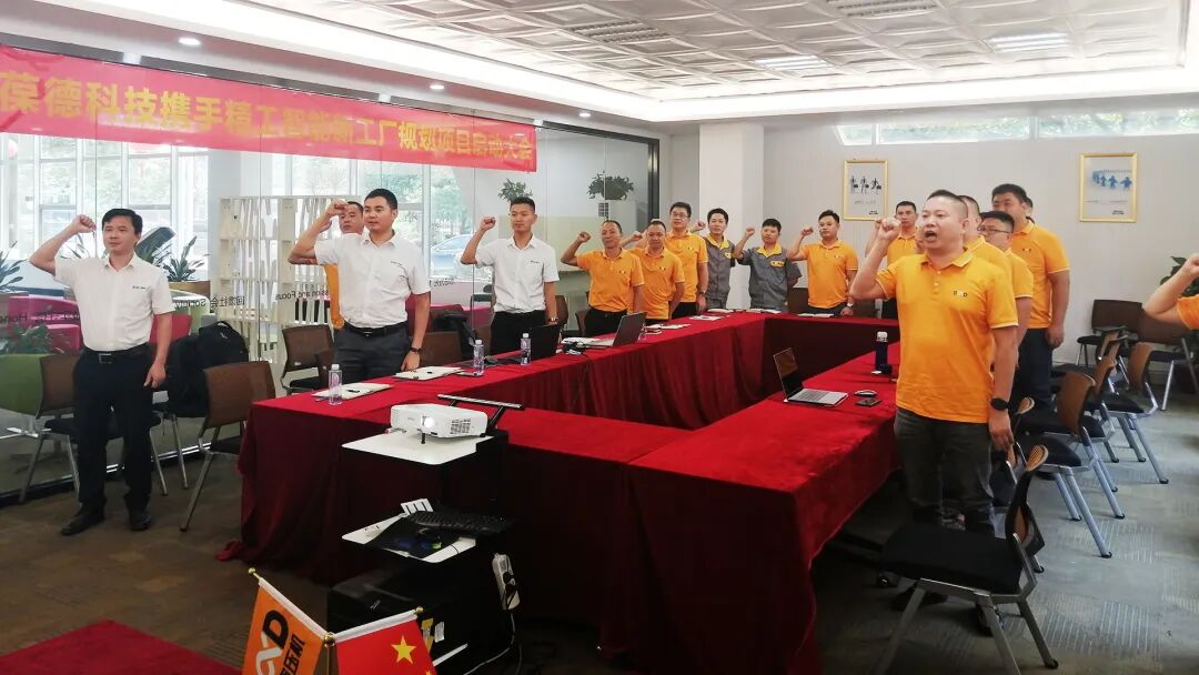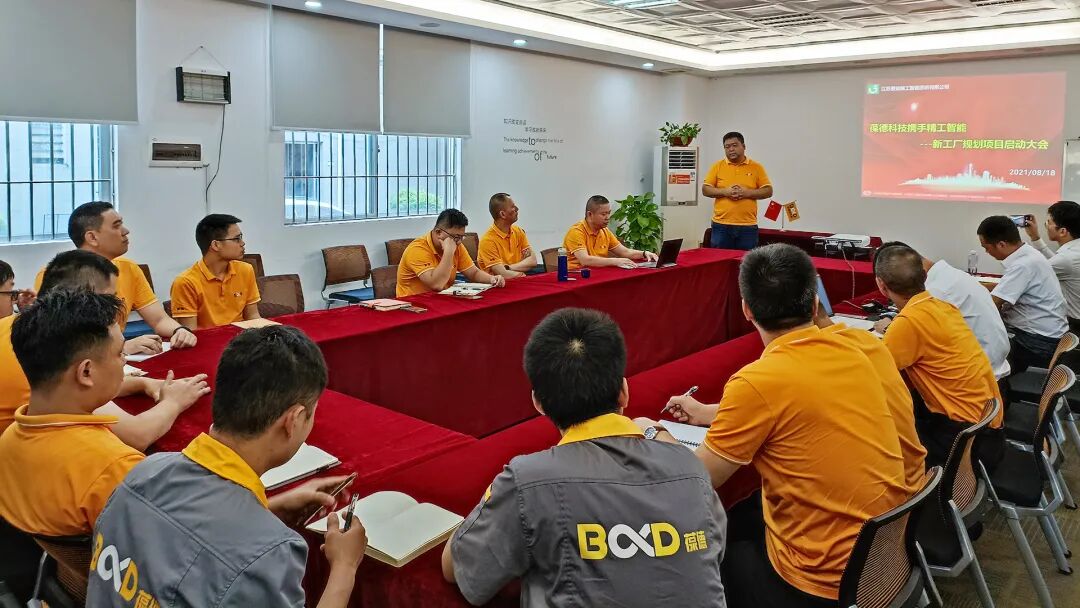 8月18日,广东葆德科技有限公司(下称“葆德”)携手广东精工智能系统有限公司(下称“精工”)新工厂规划项目启动大会在双方团队坚定而又响亮的宣誓声中圆满结束。葆德董事长郭振发、副总经理叶才亮、行政总监张志军,精工智能工厂规划事业部副总经理张胜超、项目总监杨录峰以及项目组其他成员参加会议。