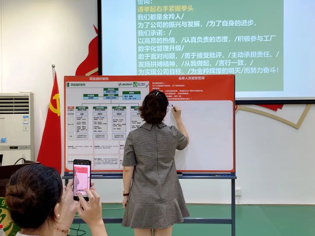 随后王老师表示精工把金羚信息化系统搭建起来,受益的是在座的每一位。感谢金羚黄董对精工的支持,为让项目顺利进行,王老师给出三个建议: