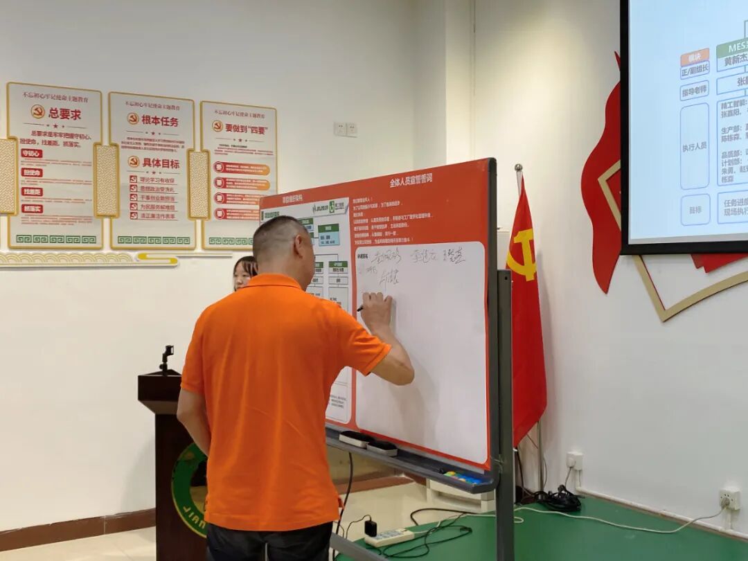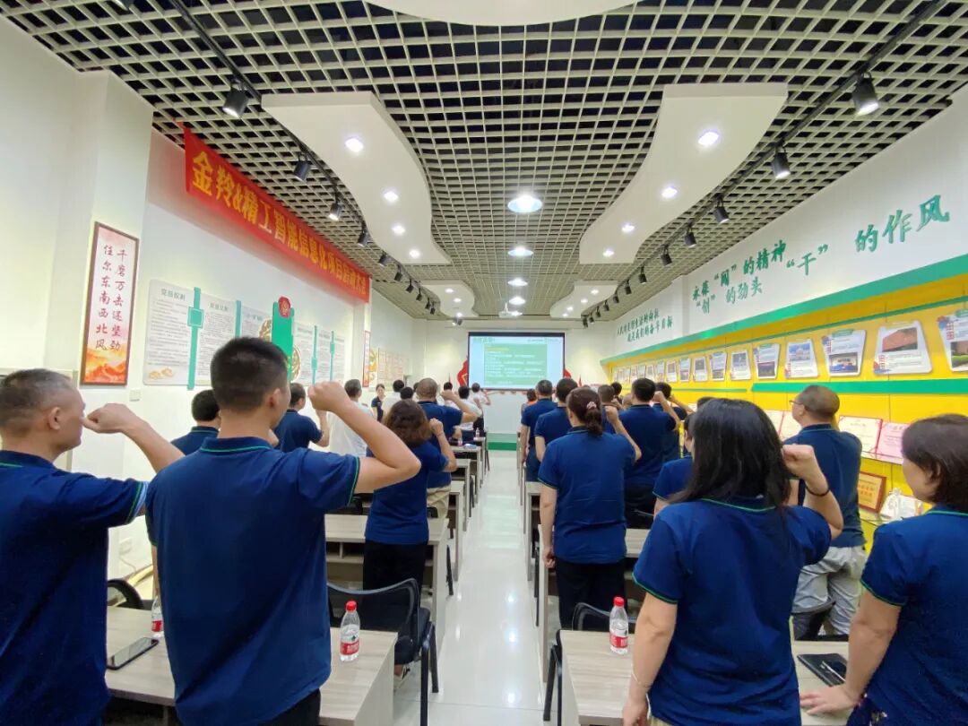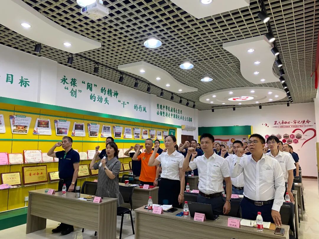 由金羚黄董领誓,全场全员起立举起右手紧握拳头进行宣誓。