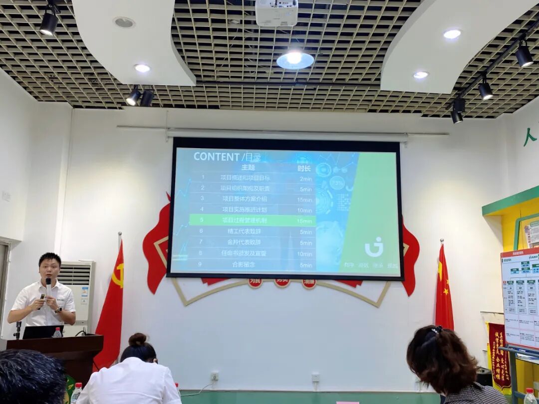 精工项目经理刘汉林老师在会上首先对项目内容和项目目标进行了概述,本次项目包括升级云MES系统(生产过程管控系统)除了对原MES系统的功能升级之外,另外由原来的两条线覆盖到现在的14条总装+电机车间+注塑车间,后续实现全流程、全价值链打通;并同时启动云WMS(智能仓储管理系统)、云APS(高级智能排程系统)和云SCM(供应链管理系统)。