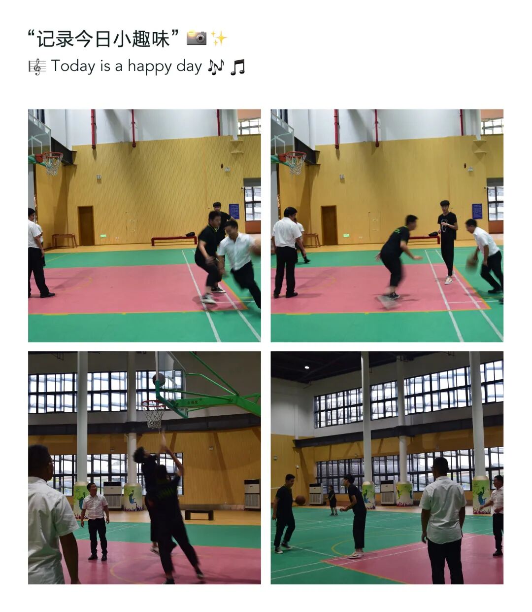 下午我们集合出发前洋运动馆,组织篮球比赛活动和羽毛球比赛活动,全员展开燃烧脂肪模式。