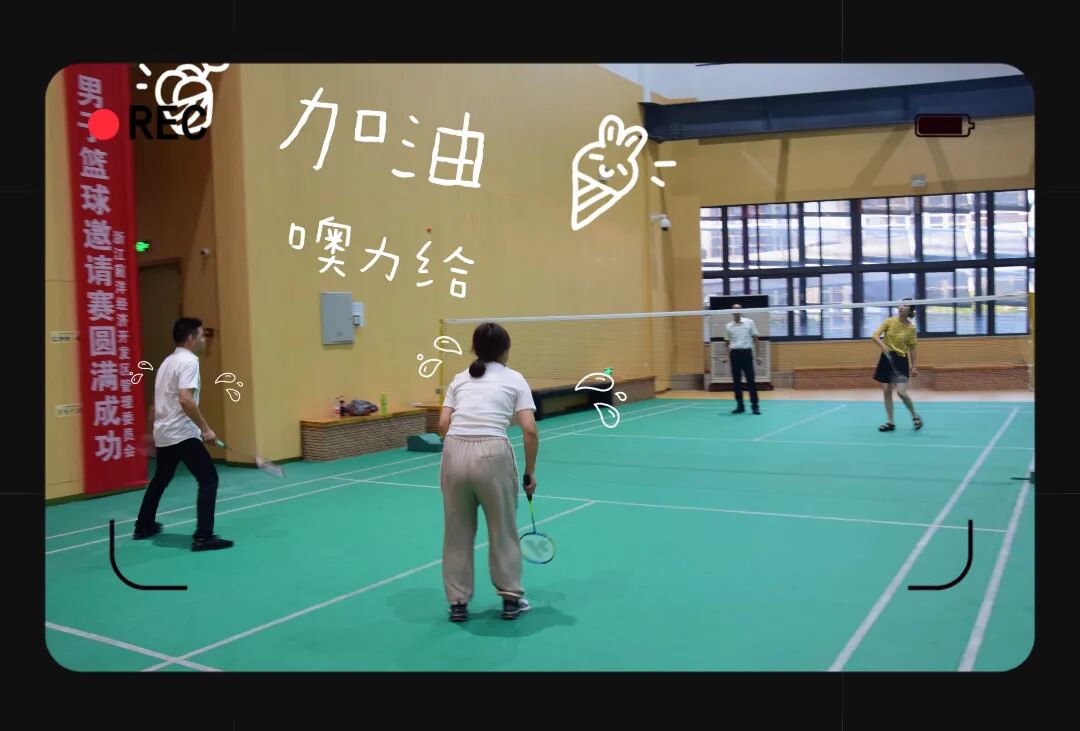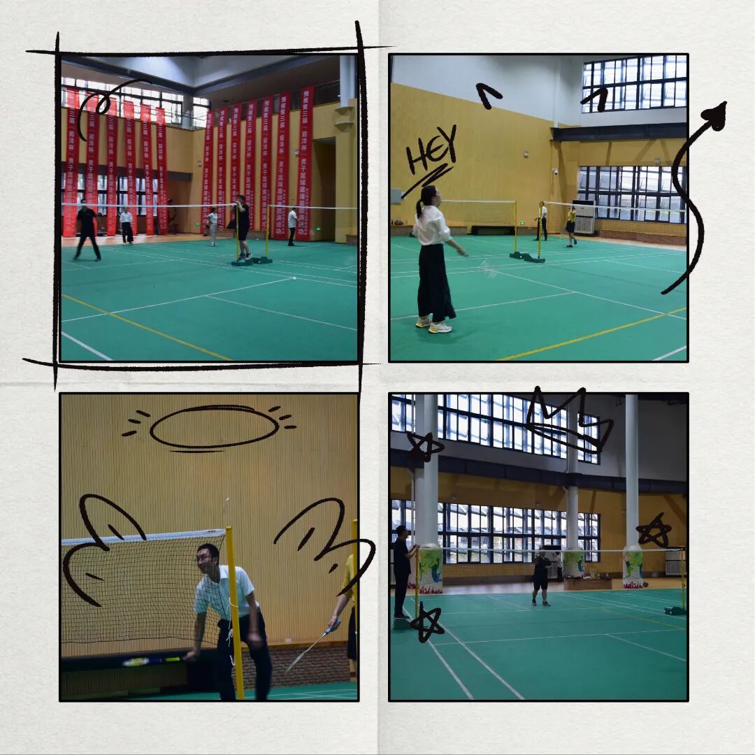 在羽毛球场上的伙伴们也不甘示弱,双打组合和单打组合打的热火朝天,默契十足,近球远球配合天衣无缝,让双方比方不相上下。在活动结束末尾,可以看到大家汗流浃背,小脸通红,想必身体的脂肪不断地在燃烧~~~。