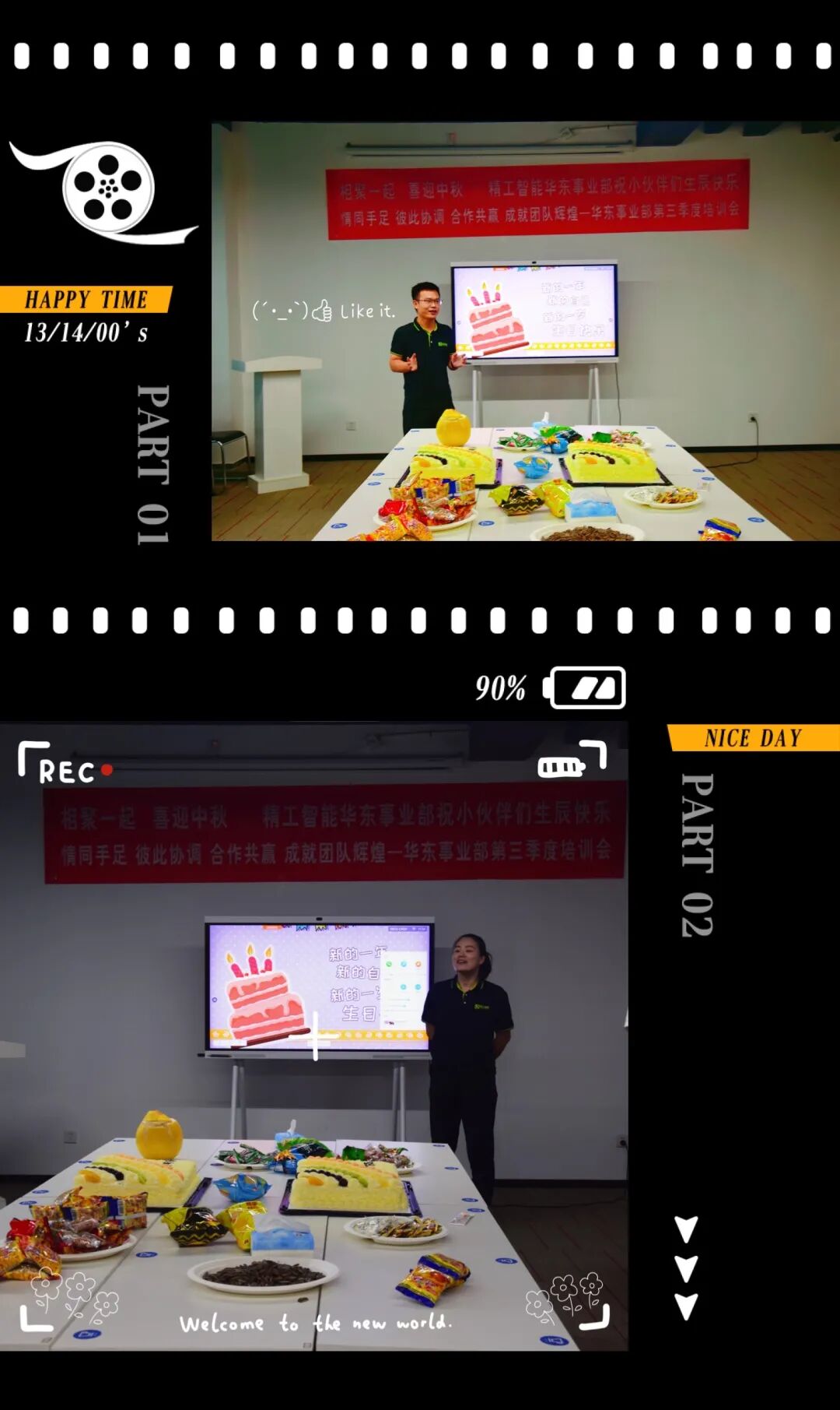 上午11点,各位小伙伴们都已安全抵达公司,毛静老师和张天华老师两两搭档主持,伴随着会议室的歌声响起,我们开始为小伙们庆生,举办生日party!