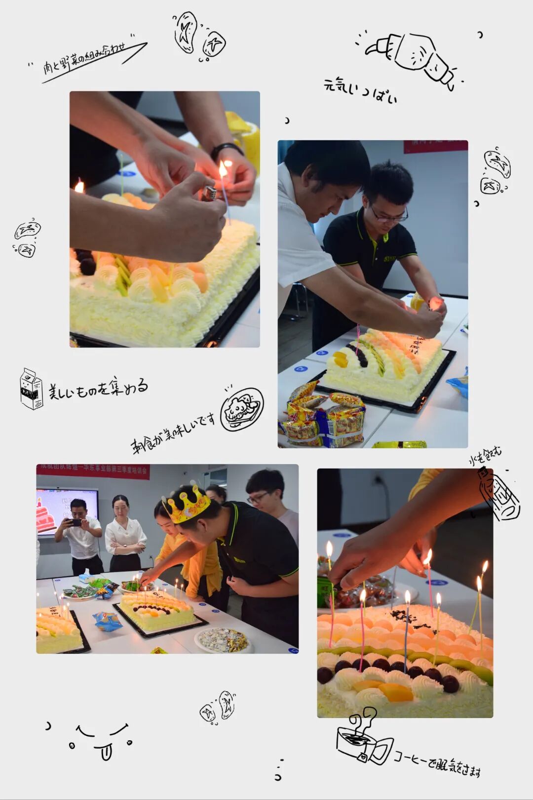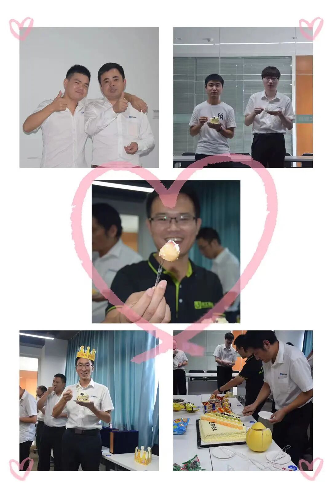 一根根蜡烛的点燃到燃烧,看着生日的伙伴们许愿的脸庞,想必彼此的愿望都是美好而又幸福,歌声围绕着整个公司,在大家的祝福下,伙伴们吹灭了蜡烛,开始切蛋糕和大家一起分享美食,在大家的笑声中,结束了本次的生日会!