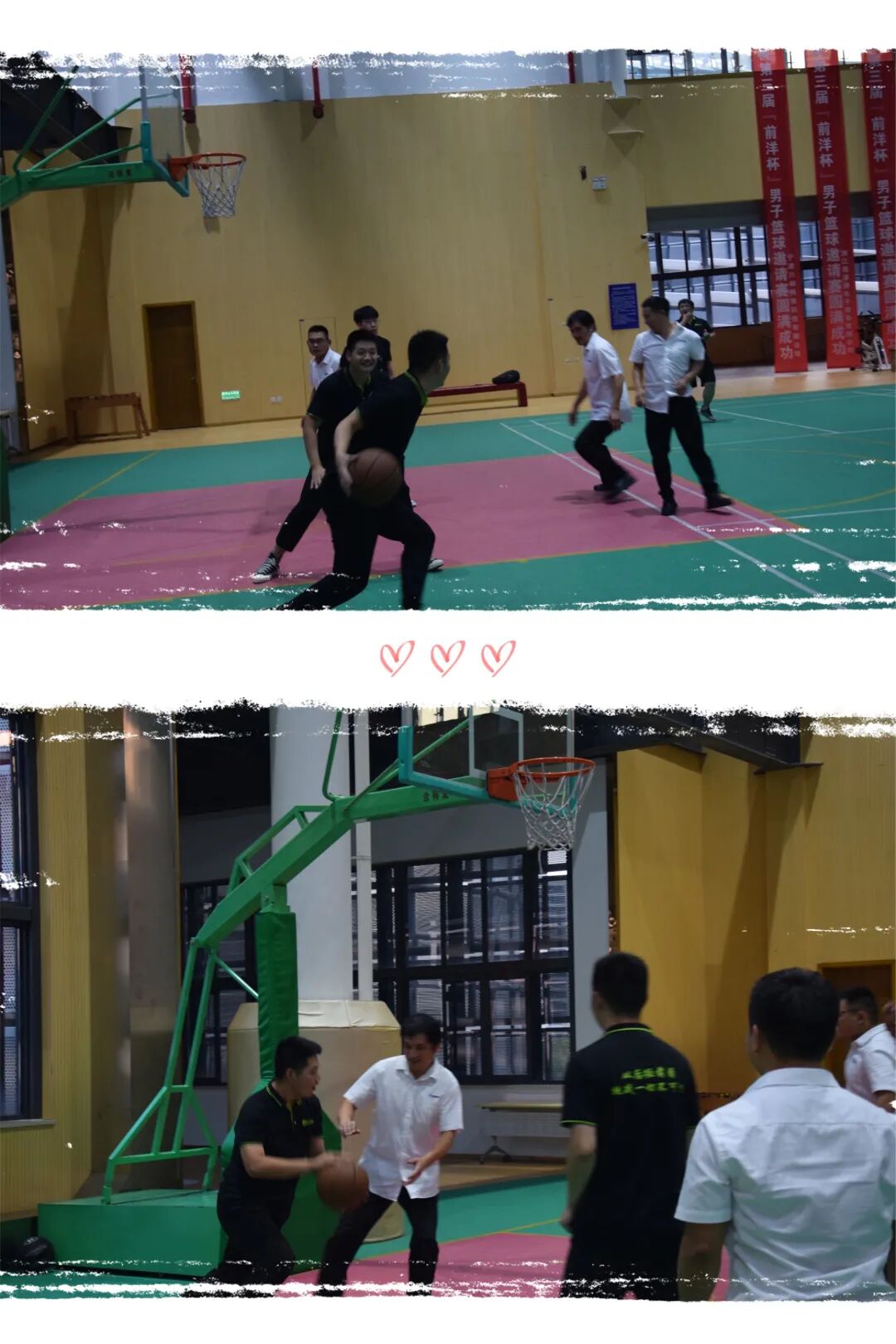 在篮球赛中,小伙伴们全力开火,不给对方留意思空隙,谢老师成为全场最佳投手,命中几率几乎完美,在陈老师的阻拦过程中脱颖而出,次次投中篮筐。