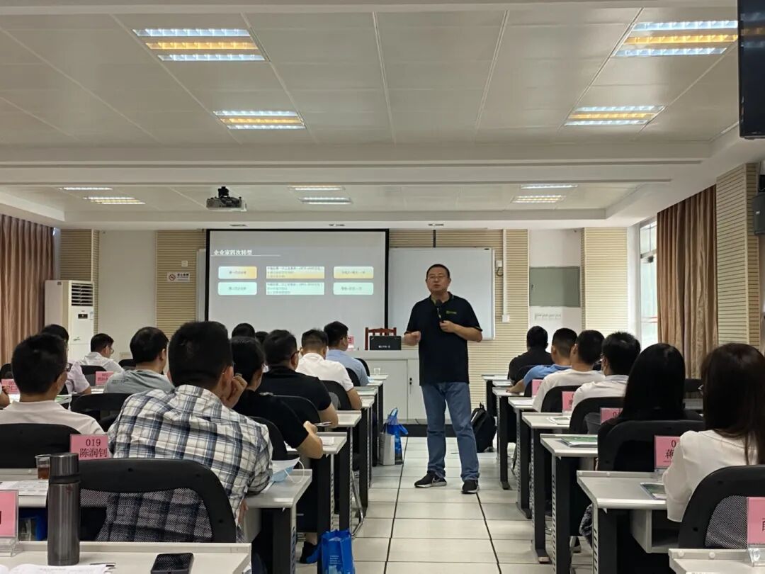2021年9月27日上午研讨班邀请了广东精工智能系统有限公司董事长丁佰胜先生作《数智化引领制造业转型升级》专题授课,为全体学员做好制造业数智化转型、科技创新管理工作带来新的思考与可实践的方法论。