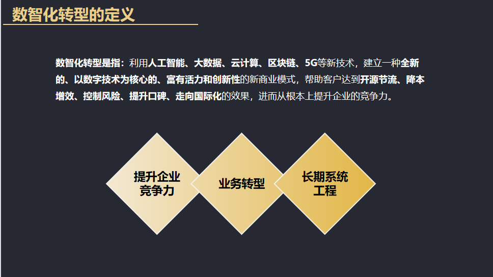 在“十四五”规划和2035年远景目标中,多次强调企业高质量发展的关键是数字化+智能化的转型,且国家、省、市、区陆续推出了关于企业数智化转型扶持政策。